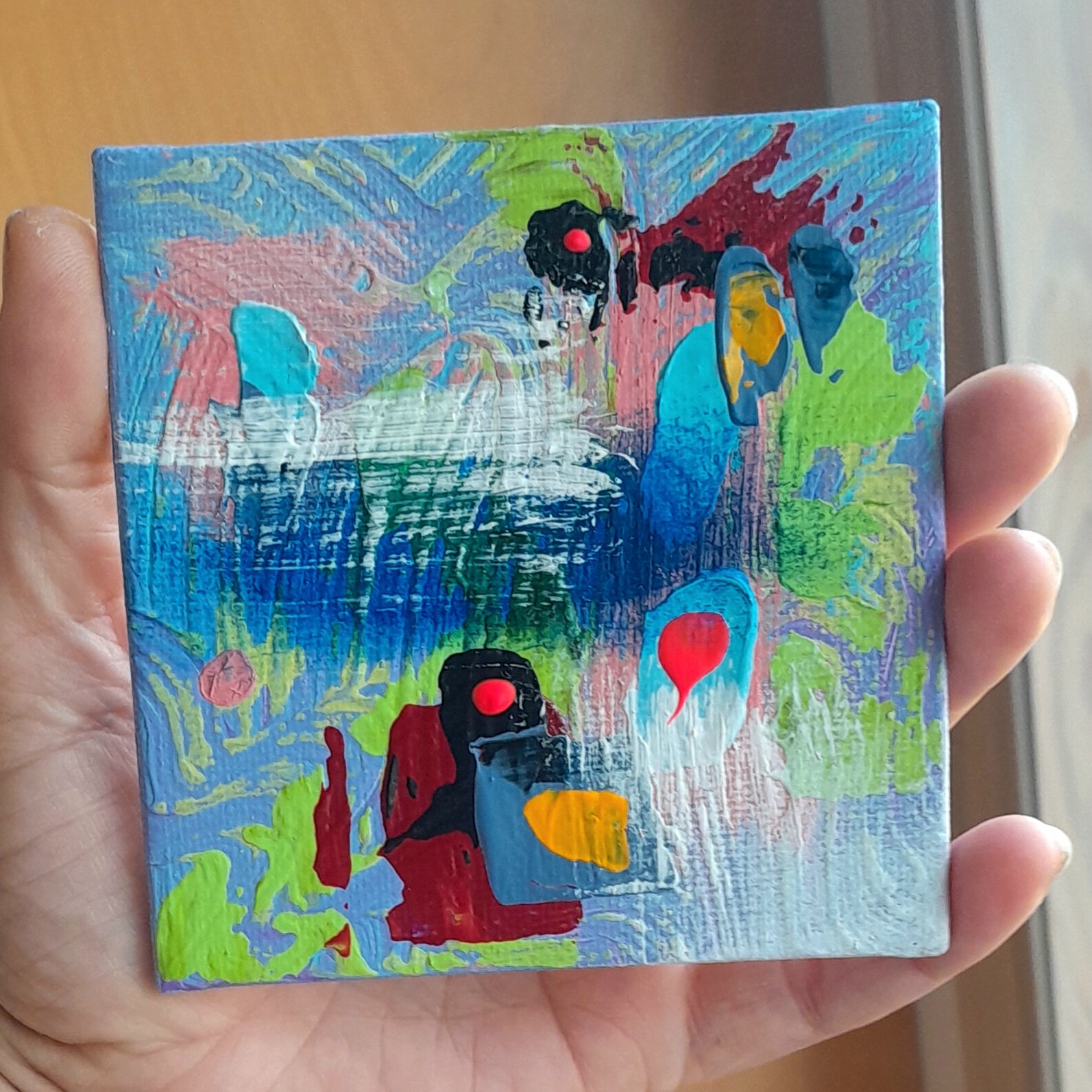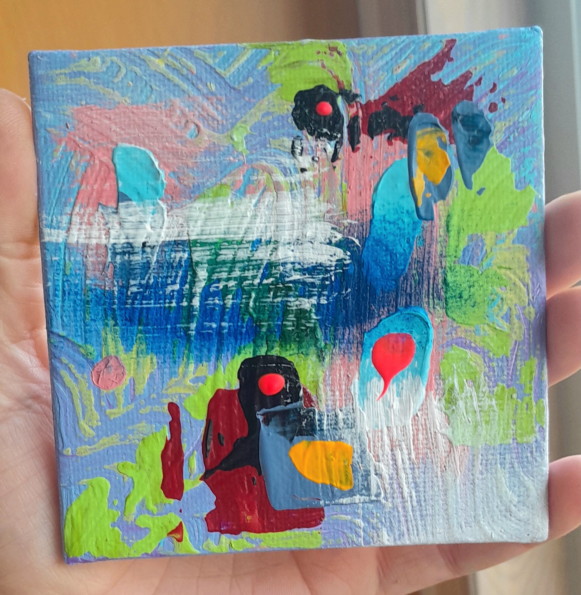 4x4" original abstract acrylic painting on canvas panel.