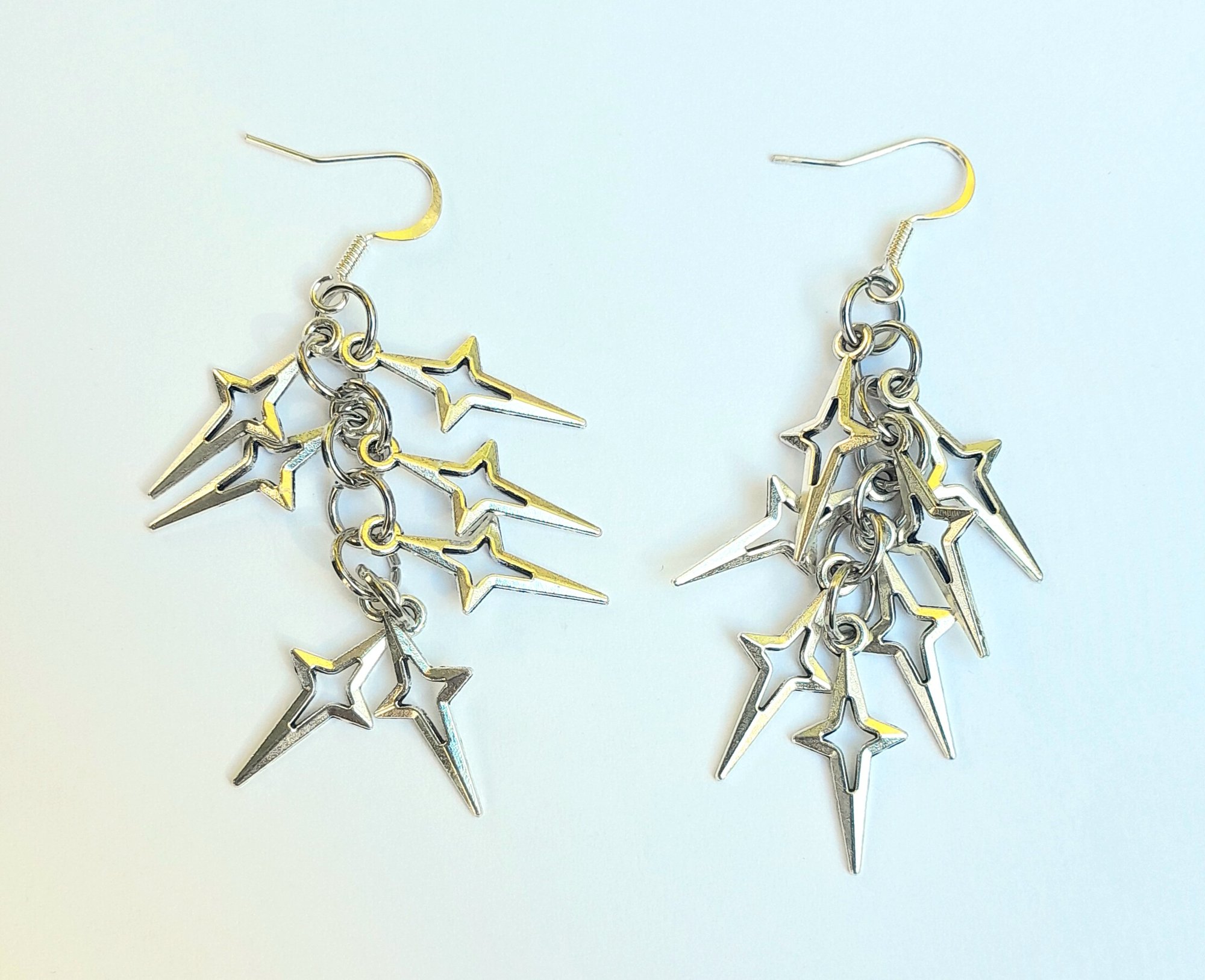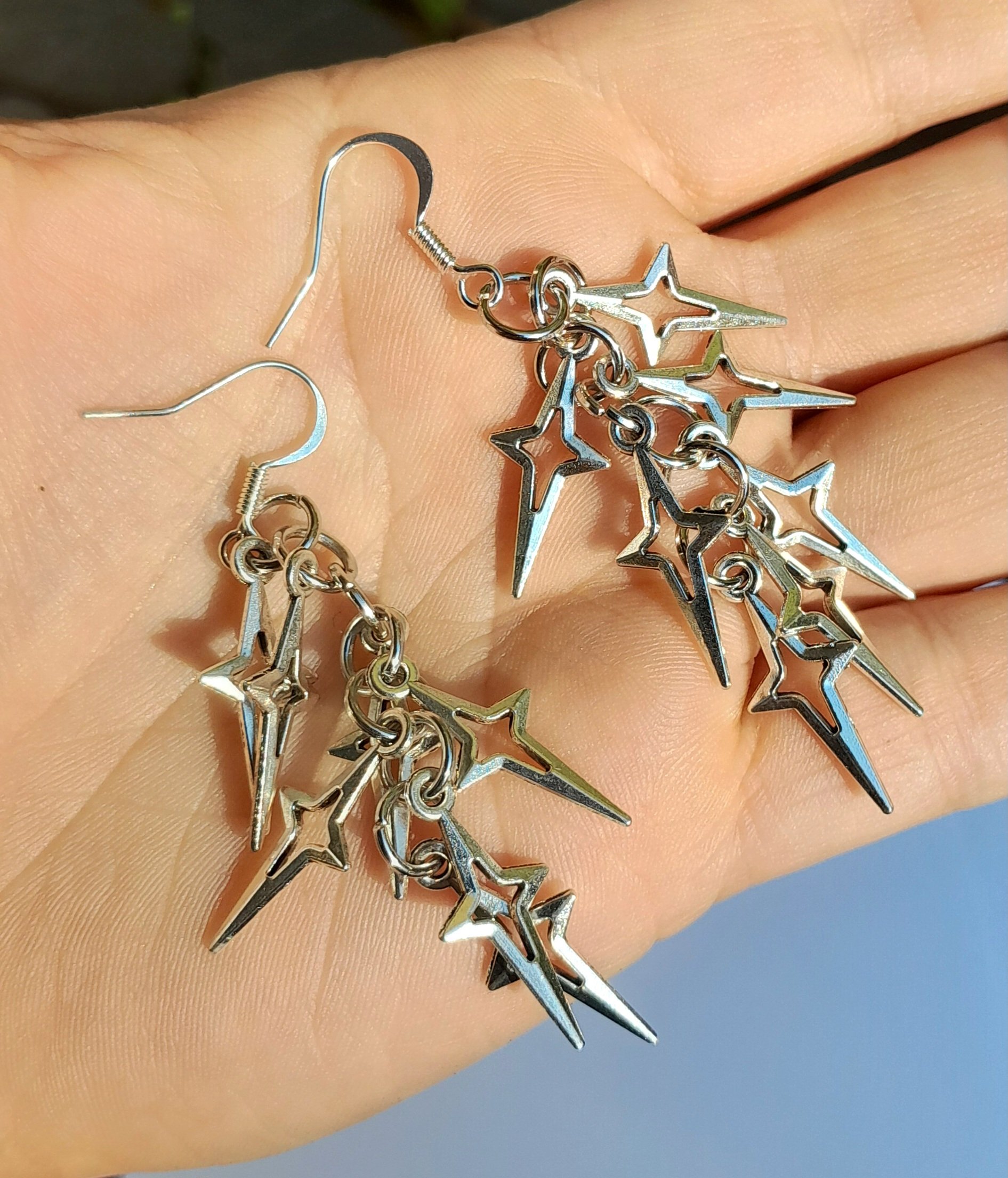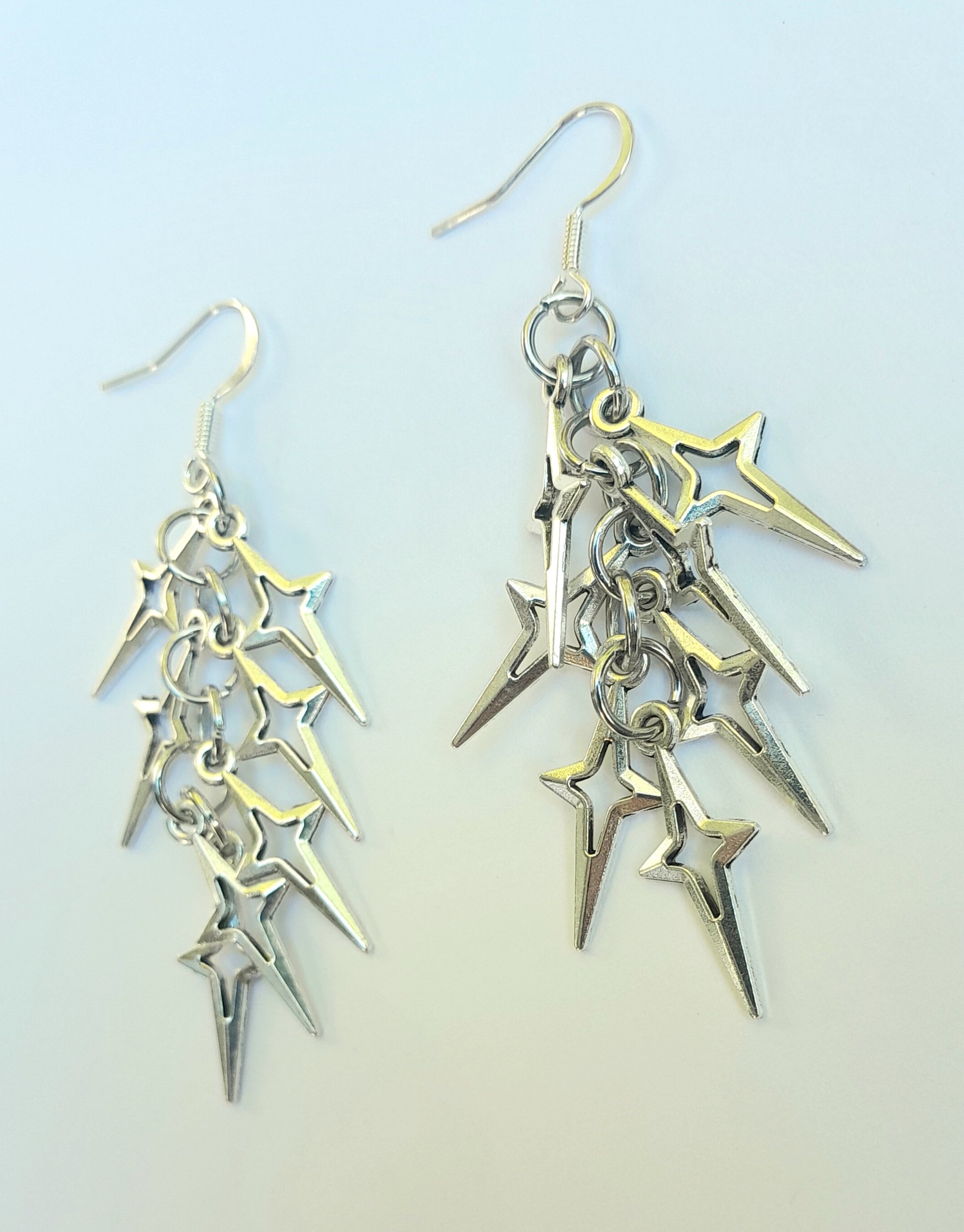 Pair of handmade earrings with 7 stainless steel stars, jump rings and iron hooks.